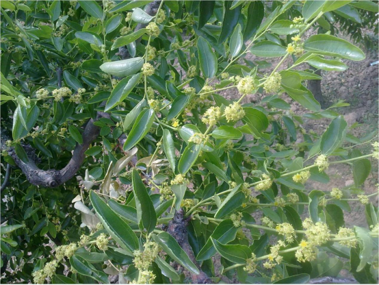 花期若遇干旱天氣,可適當(dāng)噴清水或灌水增加濕度,以防棗花柱頭焦枯,保證授粉受精和坐果。