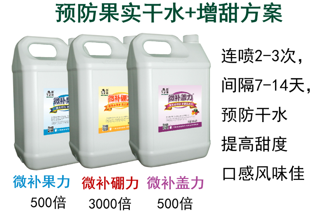 柑橘要預(yù)防減少干水,微補果力500倍+微補硼力3000-4000倍+微補蓋力500倍,連噴2-3次,對于減少后期果肉干水,提高果面光潔度都有很大的幫助。