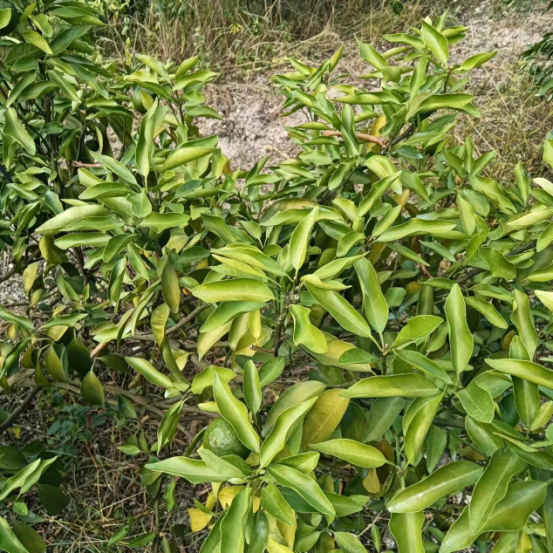 柑橘已進(jìn)入秋梢老熟期到轉(zhuǎn)色期了,持續(xù)干旱會(huì)影響果實(shí)繼續(xù)膨大,因?yàn)榍锷依鲜旌蠊麑?shí)還有二次膨大期,這個(gè)時(shí)候就是果肉飽滿期了。如果持續(xù)干旱又缺鈣會(huì)影響果實(shí)后期膨大甚至?xí)汕奥涔?,同時(shí)影響樹勢(shì),特別是掛果量大的樹可能出現(xiàn)黃化;營(yíng)養(yǎng)不足的柑桔老區(qū)導(dǎo)致樹勢(shì)黃化,缺素黃化樹+干旱,加速木虱傳播黃龍病。