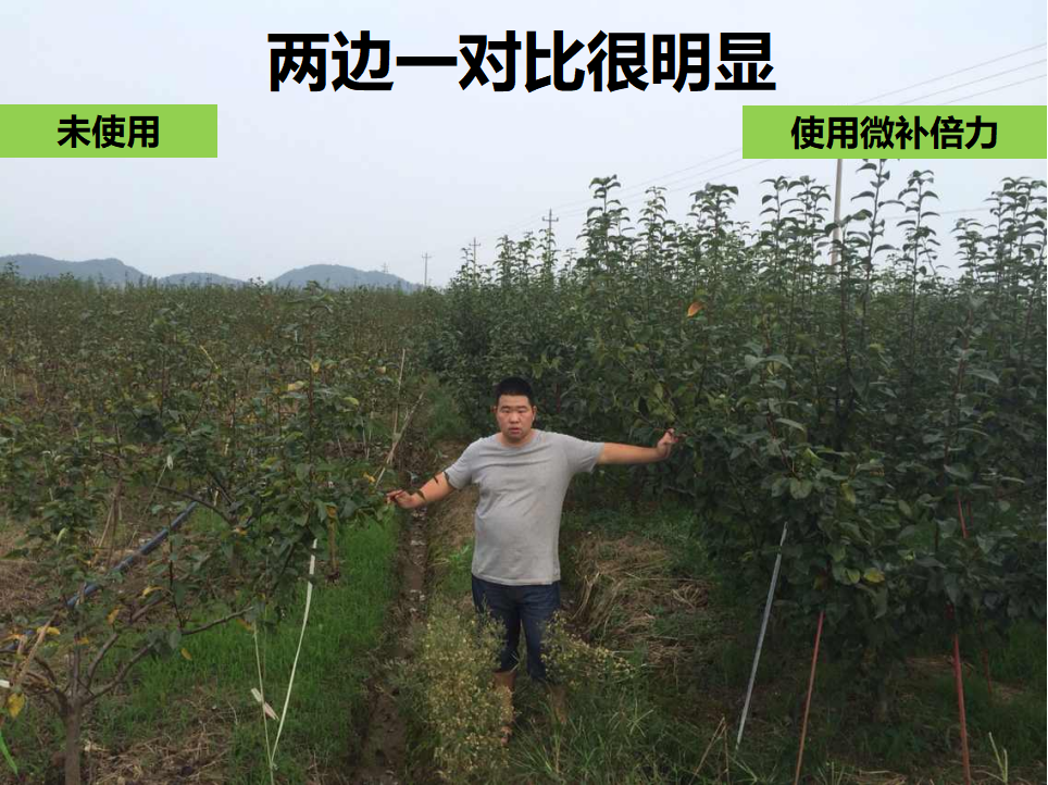 浙江姚師傅: 梨樹(shù)采后易黃葉、掉葉多,特別是頭批果采后二次果黃葉掉葉多,果子就不大,賣(mài)不出價(jià): 我在3月、5月、7月都撒施微補(bǔ)倍力3-4兩/樹(shù),黃葉落葉很少,采后一個(gè)月,保葉效果也杠杠的。