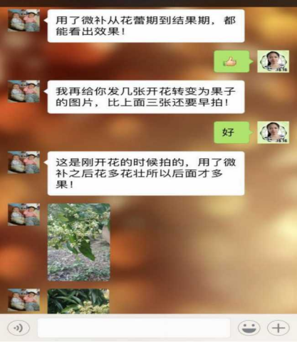 廣東陳師傅:“我一直聽余教授大講堂,促花、壯花用微補(bǔ)花力+微補(bǔ)硼力噴了5次,用后花多,也很壯很純,就是因為花壯,我后面結(jié)果率也很高一個枝條有40個果子。對比鄰居的荔枝,都沒什么弱花。”