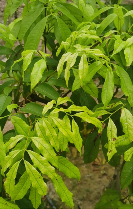 01 一是要讓梢健壯而不過(guò)旺,同時(shí)避免冬梢的抽生。在秋梢生長(zhǎng)期或生長(zhǎng)后期過(guò)量追肥,尤其是氮肥,易導(dǎo)致末次梢長(zhǎng)勢(shì)較強(qiáng),頂芽活躍,容易抽生冬梢,消耗樹(shù)體營(yíng)養(yǎng),荔枝難成花或成花枝條少,開(kāi)花保果難。 桂味沖梢 02 二是要讓秋梢轉(zhuǎn)綠快。除了氮磷鉀外,鎂、鋅、硼、鈣、鐵、錳對(duì)促進(jìn)新梢老熟也很重要,缺鈣梢和根系都不健壯,缺鎂梢老熟慢,缺鋅易小葉花葉,缺鐵新葉發(fā)白。 缺鐵 03 三是補(bǔ)充花芽分化所需的鋅硼營(yíng)養(yǎng)。荔枝枝梢成花首先需要枝梢成熟生長(zhǎng),并達(dá)到具備接受成花誘導(dǎo)能力,其次是接受低溫誘導(dǎo)后頂端芽成為花芽,在這期間鋅和硼要用于秋梢抽發(fā)成熟,等到冬季再來(lái)補(bǔ)充肯定是來(lái)不及的。 弱花畸形花穗 建議: