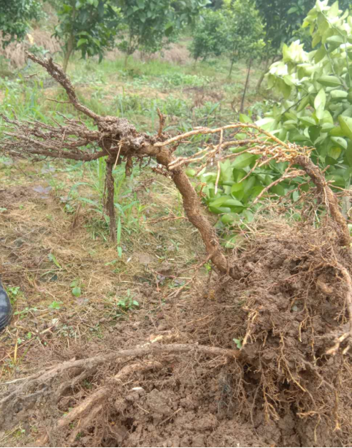 廣西武鳴的曾大哥種植了1300棵沃柑,2018年春季發(fā)現(xiàn)葉片發(fā)卷,下什么肥料都不長(zhǎng),樹(shù)勢(shì)很弱,老根沒(méi)有豆芽根,都是一些灰根為主,根腫瘤嚴(yán)重,很多人說(shuō)是根結(jié)線蟲(chóng)為害,可用了很多化學(xué)根結(jié)線蟲(chóng)產(chǎn)品,問(wèn)題依然沒(méi)有解決。