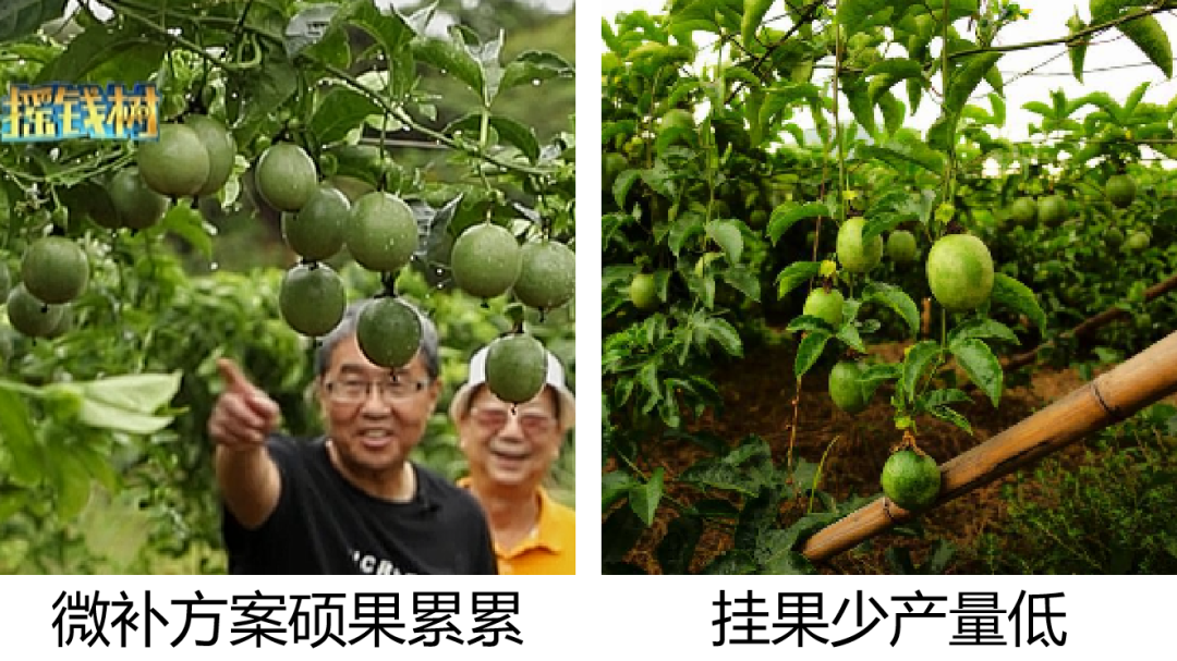 百香果進(jìn)入連續(xù)開(kāi)花坐果期,如何提高百香果品質(zhì)?如何減少農(nóng)藥殘留?廖叔用他的親身經(jīng)歷告訴你。 廖叔的十來(lái)畝百香果園曾經(jīng)丟荒,后來(lái)被廖叔租下來(lái)種百香果,因?yàn)橥恋卣持?,土壤酸化也比較嚴(yán)重,百香果的根系不是很好,苗提不起。廖叔以前只知道施復(fù)合肥,導(dǎo)致百香果開(kāi)花坐果率低,后來(lái),廖叔聽(tīng)了余教授大講堂,按照余教授大講堂的方案管理,果園大變樣。 話不多說(shuō),點(diǎn)擊視頻詳細(xì)了解。 按照微補(bǔ)方案使用下來(lái),我們可以從廖叔的方案中總結(jié)3點(diǎn)經(jīng)驗(yàn)。 促花保果提高品質(zhì) 百香果連續(xù)開(kāi)花坐果期,交替噴施微補(bǔ)花力1000倍+微補(bǔ)果力500倍,微補(bǔ)蓋力500倍+微補(bǔ)碧力1000倍,可以起到?;ū9?,提高百香果產(chǎn)量,促進(jìn)百香果均勻膨大,促進(jìn)百香果汁多、酸甜可口。